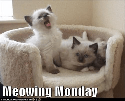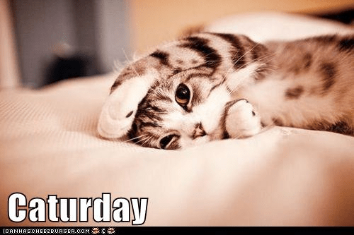 My Mum and I are both cat lovers of the highest order and while neither of us is lucky enough to actually have a cat living in our homes at the moment, we both love looking at pictures of adorable kitties. I have been following the blog at http://icanhas.cheezburger.com/lolcats for years. Whenever the world gets too harsh and I need quick injection of cute, it’s my go to place. Last year, I began sending my Mum a daily dose of her own kitty cuteness, direct from lolcats. Over the months, I have renamed all of the days of the week to coincide with these feline emails. It all started when I noticed that many of the folks in my twitter feed were referring to Saturday as Caturday and it just spiraled from there. Let me illustrate…